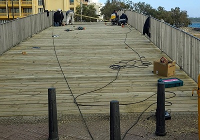 Cosas que pasan en el municipio de Manacor: La pasarela peatonal que une Sant Llorenç des Cardassar y Manacor en el núcleo turístico y urbano de S'Illot por el riuet, va tomando forma en su completa rehabilitación. Por las fotos que nos manda nuestro corresponsal en la zona, se mantienen las vigas de estructura y sujeción con acero inoxidable y el lecho y suelo de la pasarela repite de madera, incluido un añadido en las barandillas de protección. Con este diseño será muy importante que cada año se le de una mano de protección a la madera para que no pierda color y estética. Se ha hecho completamente nueva, por expertos, una empresa especializada, seguro que su terminado es garantía. Ha costado entre ambos Ayuntamientos la friolera de 498.000 euros, nos tiene que durar unos años, son casi medio kilo. Por el ritmo de las mismas está claro que en las próximas semanas se hará su inauguración. Es necesaria para comunicar ambos municipios, sobre todo ahora que llegan las lluvias y por la arena no se puede ir.