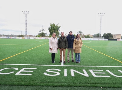 El Consell de Mallorca inaugura el nuevo césped del campo de fútbol del polideportivo de Sineu financiado por el Plan de Obras y Servicios. Durante la visita institucional al Ayuntamiento, Galmés y Amate han entregado al alcalde, Tomeu Mulet, el proyecto básico de adecuación del archivo municipal. El Consell de Mallorca ha inaugurado este martes el nuevo césped del campo de fútbol del polideportivo municipal de Sineu, un proyecto subvencionado con el Plan de Obras y Servicios 2024-2025 que concede la institución insular, por un importe de 345.349 euros.